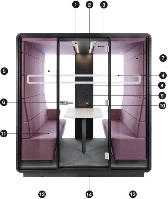 Schalldichte Akustikkabinen für gemeinsames Arbeiten bieten die ideale akustische Umgebung, in der Teams lebhafte dynamische Meetings halten können, ohne sich darüber zu sorgen, ob sie die Kollegen stören